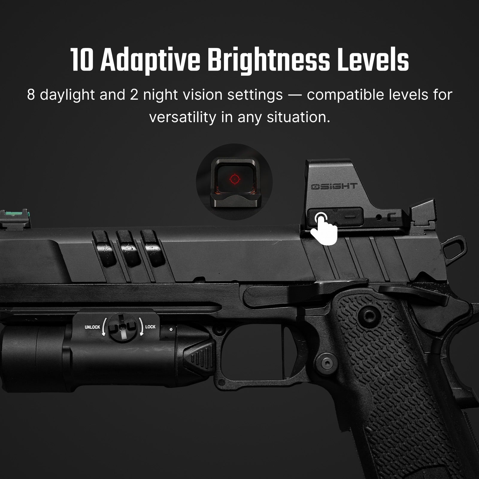 - Most Common Footprint: By adopting the de facto industry standard (Ruggedized Miniature Reflex, or 407c/507c footprint), Osight C is a versatile addition to many full-size and compact pistols. Osight picatinny mounts add even more possibilities with both high and low options that will work with most rifle applications.