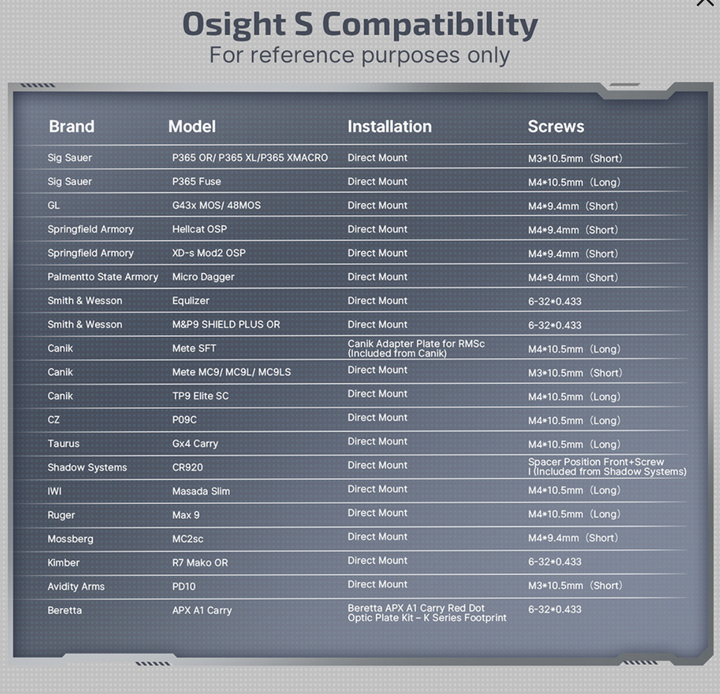 * Osight S comes with 7 types of screws, ensuring compatibility with a wider range of builds.